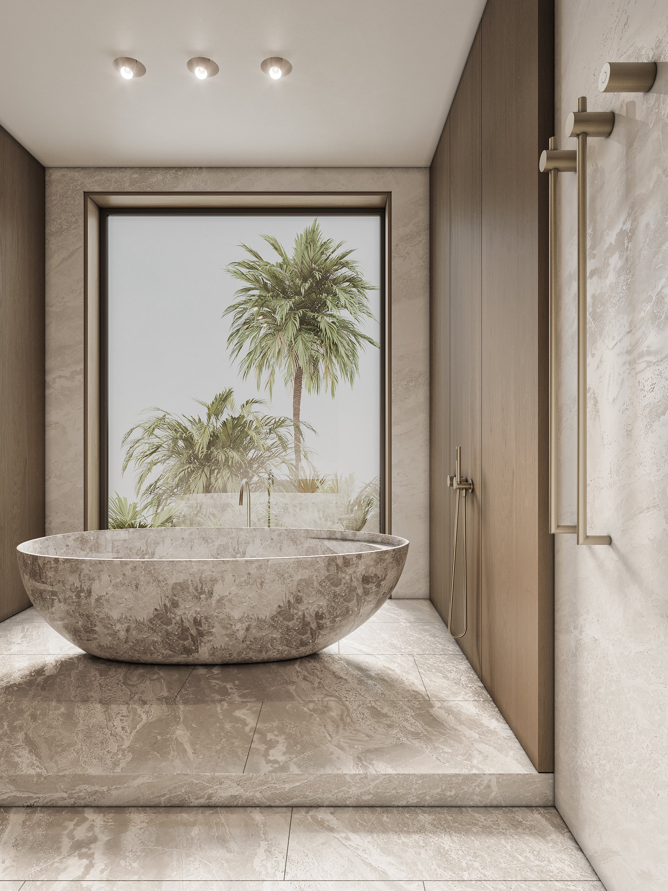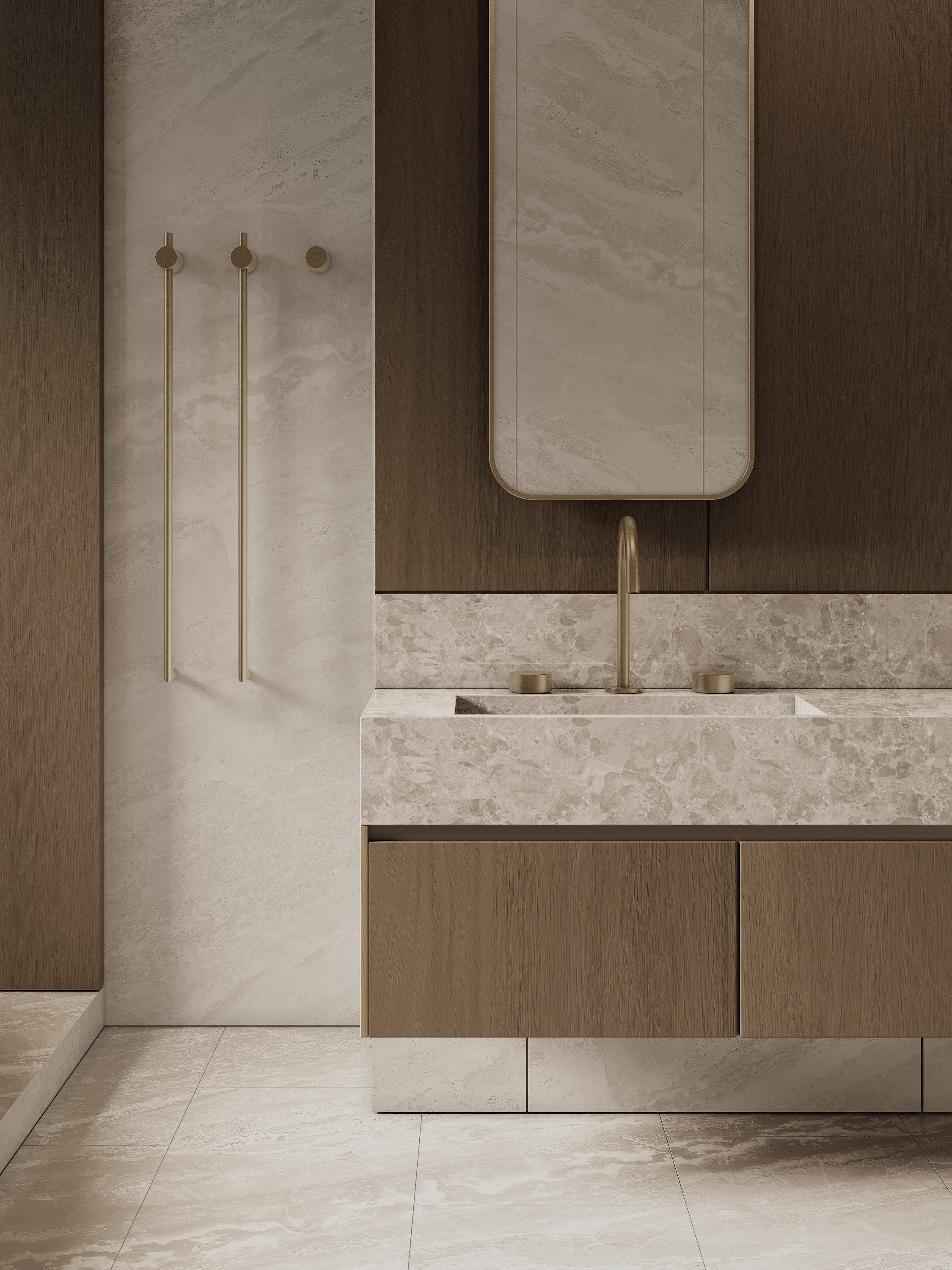 WALL-MOUNTED VERTICAL HEATED TOWEL RACK WITH DIGITAL DISPLAY - GOLD