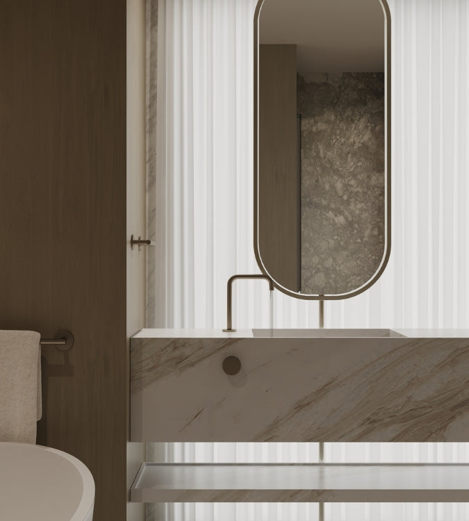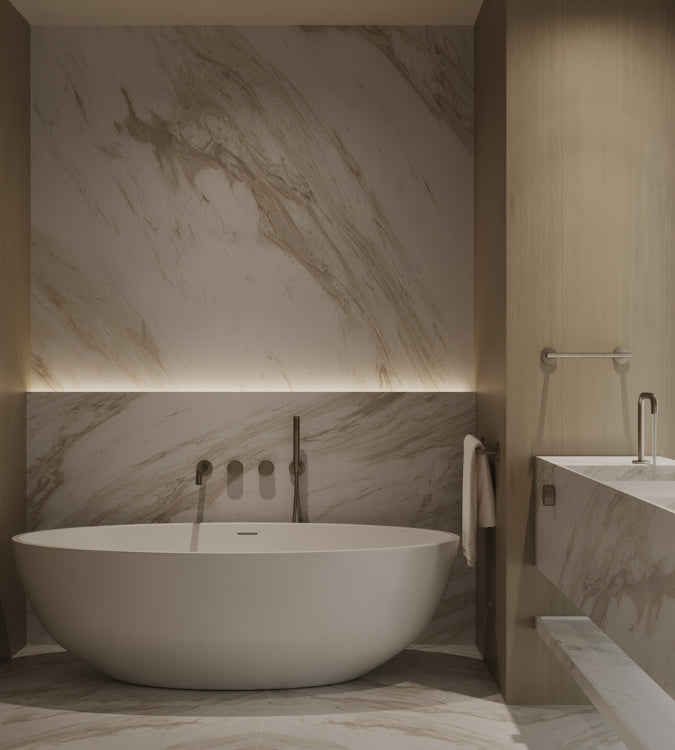 Oversized Double Sink Floating Handcrafted Marble Vanity - WHITE VOLAKAS
