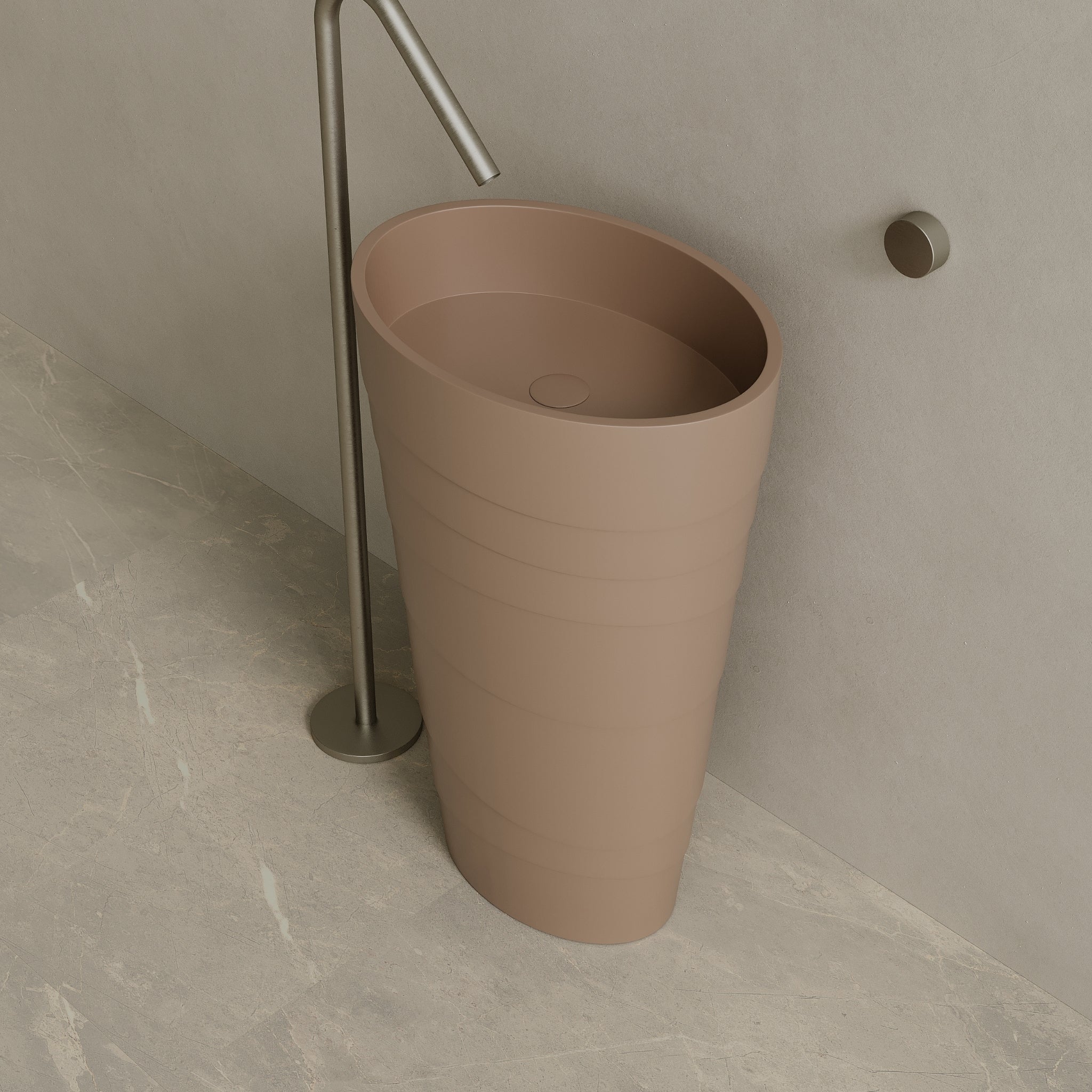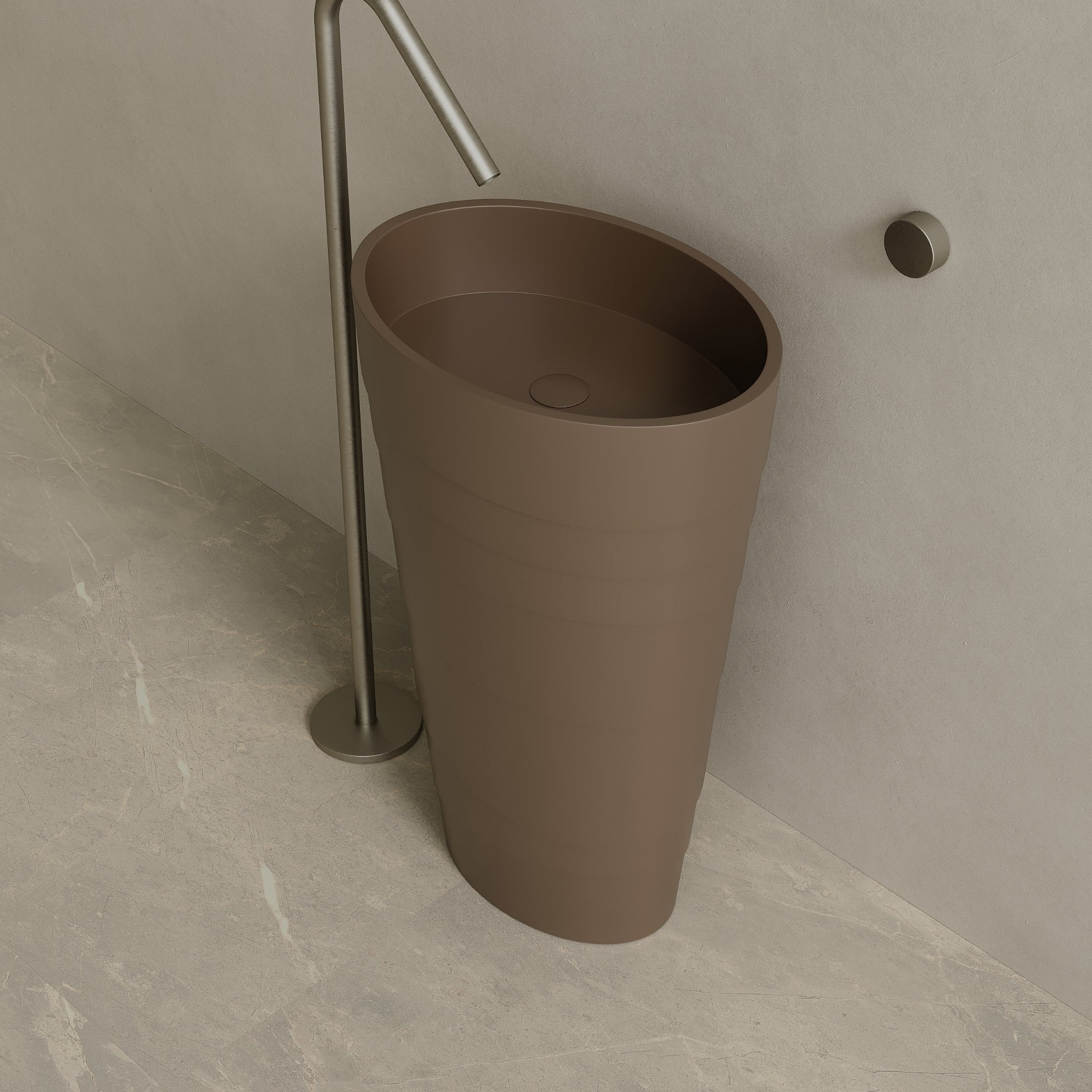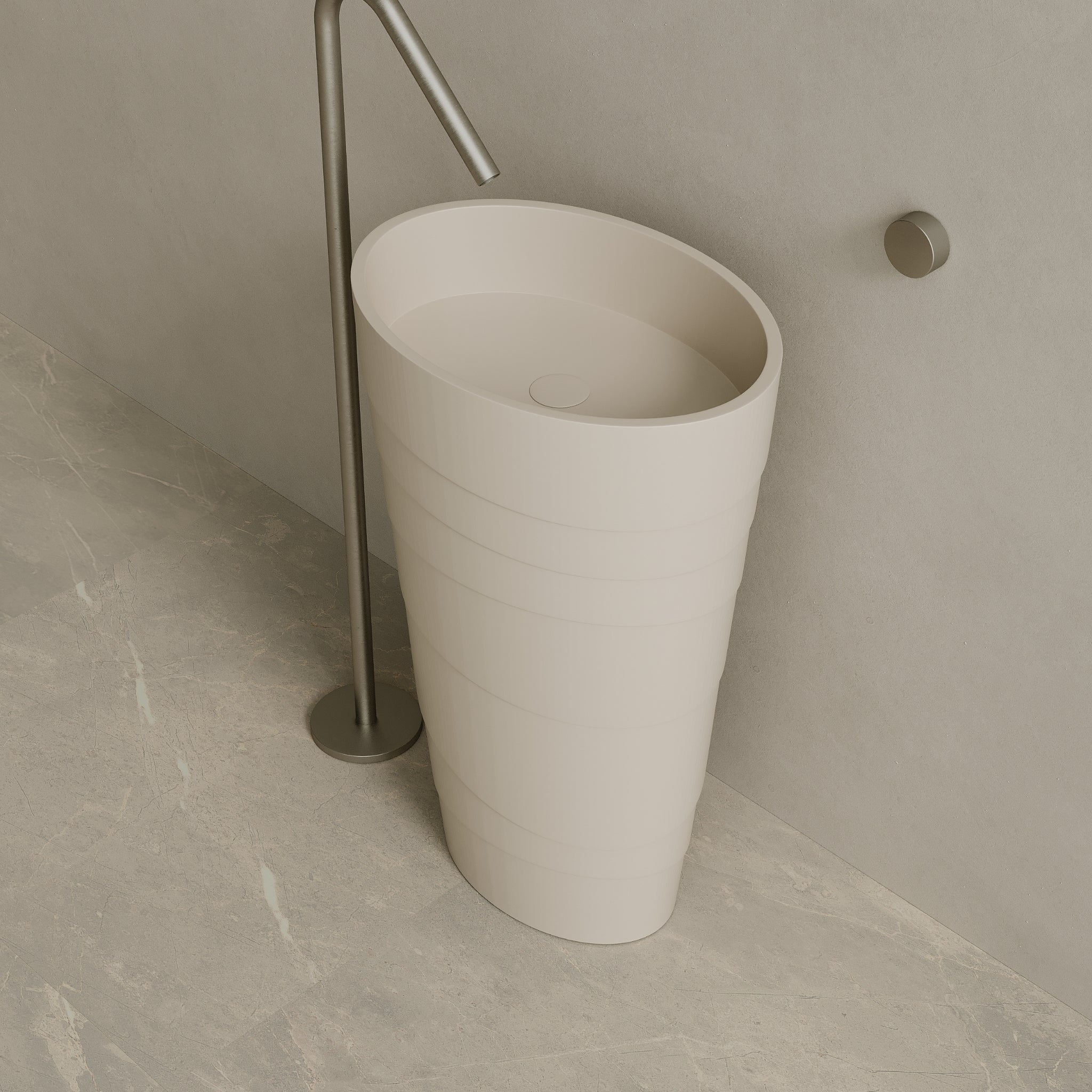16" x 35" Solid Surface Stone Resin Round Pedestal Sink